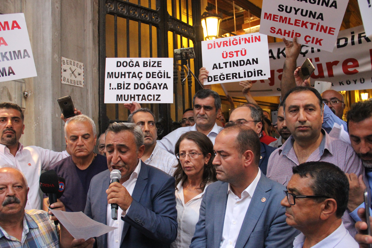 Divriği Kültür Derneği yöneticileri ve üyeleri ise geçtiğimiz gün Divriği’nin Mursal köyünde 200-300 jandarma eşliğinde çalışmaların başlatılmasını protesto etmek için Taksim Tünel’den Galatasaray Meydanı’na yürüyerek basın açıklaması yapmak istedi.