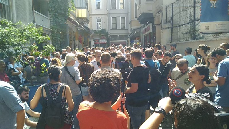 Eylem için gelenler İnsan Hakları Derneği (İHD) İstanbul Şubesi önünde toplanırken Galatasaray Meydanı’na yapılacak yürüyüş polis tarafından engellendi.