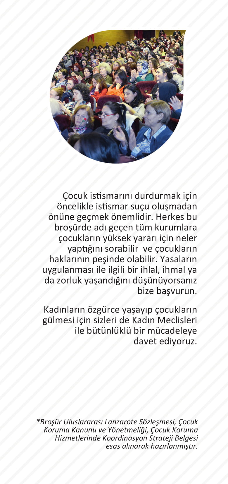 Kadın Meclisleri çocuk istiasmarını önlemenin yöntemlerini anlatan bir broşür yayımladı. Kadın Meclisleri broşürde çocuk istismarını durdurmak için öncelikle istismar suçunun oluşmadan önüne geçilmesi gerektiğini söyledi: