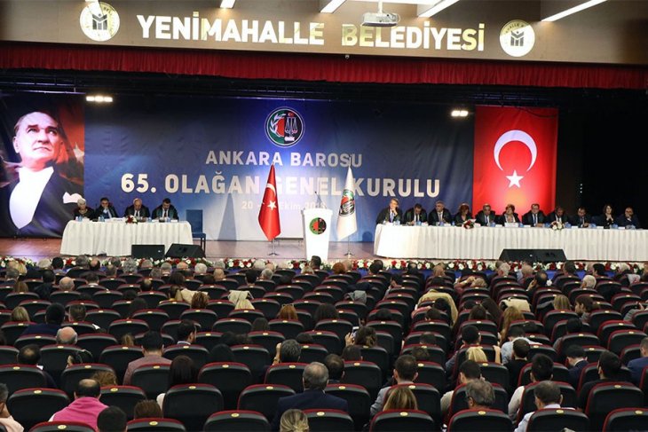 Ankara Barosu 65. Olağan Genel Kurulu, Yenimahalle’de bulunan Nazım Hikmet Kongre ve Kültür Merkezi’nde toplandı. 15 bini aşkın avukatın kayıtlı olduğu Ankara Barosu, sabah saatlerinde toplanacağı duyurulan genel kurulu için gerekli imza sayısını öğleden sonra toplayabildi. 1580 imza ile açılan genel kurulda tutuklu avukatların gönderdiği çelenk dikkat çekti.