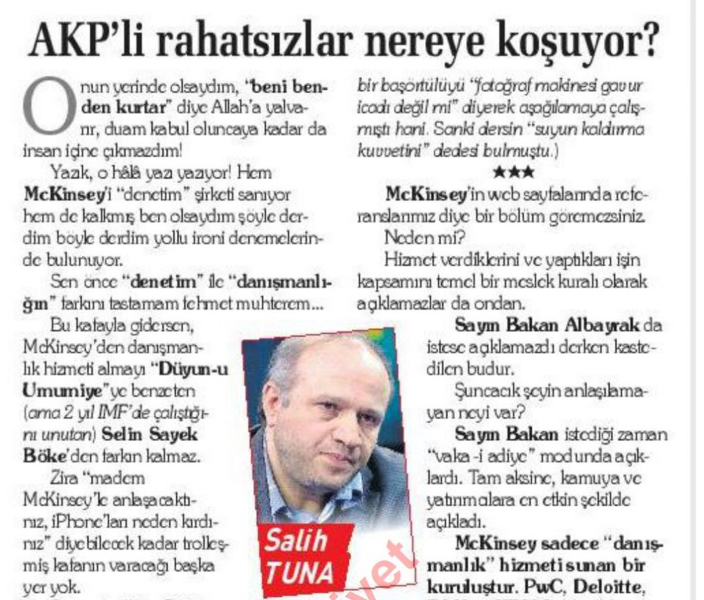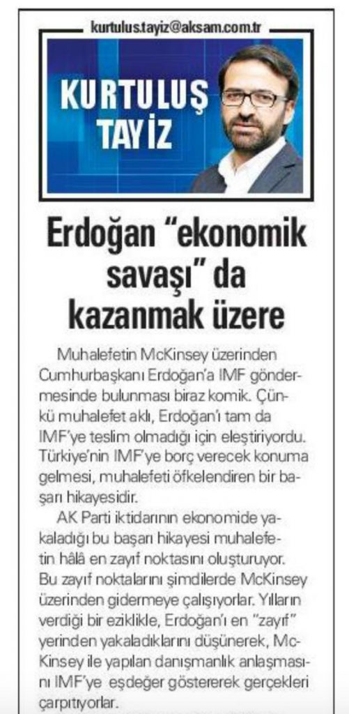 AKP’li yazarlar ise ABD’li McKinsey ile yapılan anlaşmayı eleştirenlere köşelerinden yanıt vermişti: