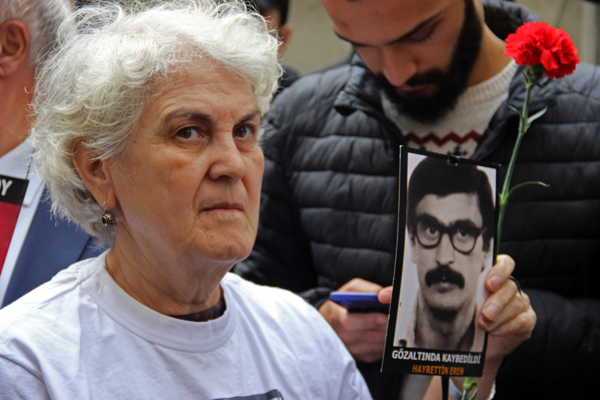 “38 yıl önce Gayrettepe Siyasi Şube’de kaybedilen, Hayrettin Eren’in akıbetini açıklayın” diyen kayıp yakınları adına bu haftanın açıklamasını Cumartesi İnsanları’ndan Sebla Arcan okudu.