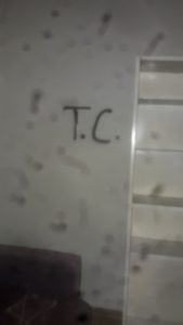 Baskın düzenlenen evlerden birinde ev sahiplerinin bulunmadığı sırada kapıyı kırarak içeri giren polislerin evin duvarlarına “TC” yazıp “penis” resmi çizdiği, eşyaları dağıttığı belirtildi.