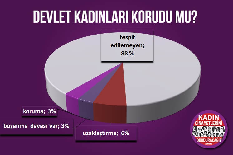 Eylül ayında öldürülen kadınların 30’unun koruma kararının olup olmadığı bilinmezken;1’inin koruma kararının olduğu, 2’sinin uzaklaştırma kararının, 1’inin boşanma davasının olduğu biliniyor.