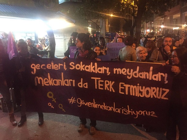 Kadınlar, Reset Bar’da yaşanan taciz olayına karşı güvenli mekan talebi ile Kadıköy sokaklarını gezerek eylem yaptı