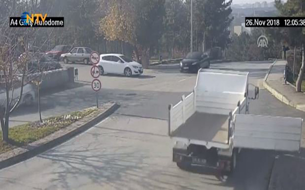 Araç, saat 12.05’te üniversiteye giriş yaptıktan sonra arka kapak takılı olduğu mandaldan kurtuluyor. Kamyonet, bu şekilde bir süre ilerledikten sonra arka kapak kaldırımda yürüyen öğrenciye çarpıyor.