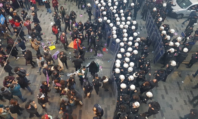 Uzunkaya’nın mesajı haber kanallarında yayımlanırken İstanbul’da 25 Kasım yürüyüşüne izin vermeyen polis barikat kurup kadınlara biber gazıyla saldırıyordu.