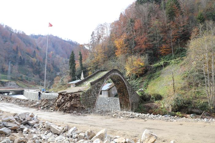 Rize’nin Çayeli İlçesine bağlı Sezon Vadisi’nde, yaylaya çıkan yollardaki genişletme çalışmaları sırasında yaklaşık 200 yıllık bir tarihi köprüye de zarar verildi