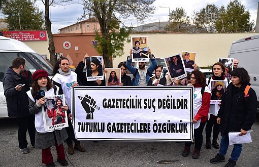 Gazetecilerin basın açıklaması yaptığı hapishanede, gazeteciler İsminaz Temel, Semiha Şahin, Pınar Gayıp, Reyhan Hacıoğlu ve Hicran Ürün’ün de aralarında olduğu en az sekiz gazeteci tutuluyor.