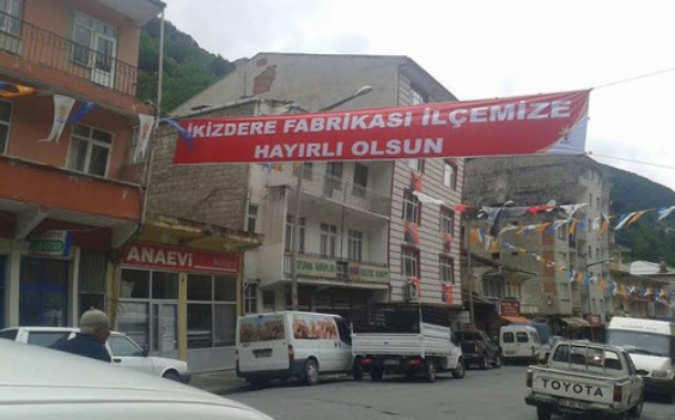 AKP, İkizdere’de kurulması planlanan çay fabrikasına ilişkin ilçe merkezine “İkizdere Fabrikası hayırlı olsun” yazılı pankartlar asmıştı.