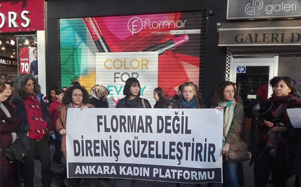 Ankaralı kadınlar, “Flormar değil direniş güzelleştirir”, “Yaşasın kadın dayanışması” sloganlarıyla eylemi sonlandırdı.