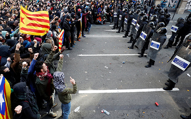Bağımsızlık yanlısı Katalanlar, İspanya Bakanlar Kurulu’nun Barselona’da toplanmasını protesto ediyor. Sabah saatlerinden bu yana yol kapatma eylemlerinin sürdüğü protestolarda en az 7 kişi gözaltına alındı