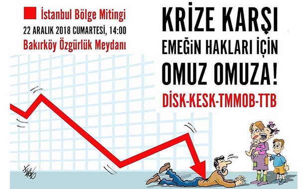 KESK, DİSK, TMMOB ve TTB’nin çağrısıyla bölgelerde düzenlenen “krizin bedelini ödemiyoruz” mitinglerinin Marmara ayağı 22 Aralık günü İstanbul’da gerçekleşti. Mitinge çağrı için hazırlanan görsellerden birisi sosyal medyada ve kadın mücadelesinin elinin değdiği örgütsel yapılarda bir tartışma konusu oldu. Söz konusu görselde krizi temsil eden bir grafik, erkek işçinin üzerine düşerken erkek işçinin karısı olduğunu tahmin ettiğimiz bir kadın kucağında ve eteğinde çocuğu ile kenarda çaresizce durmaktaydı.