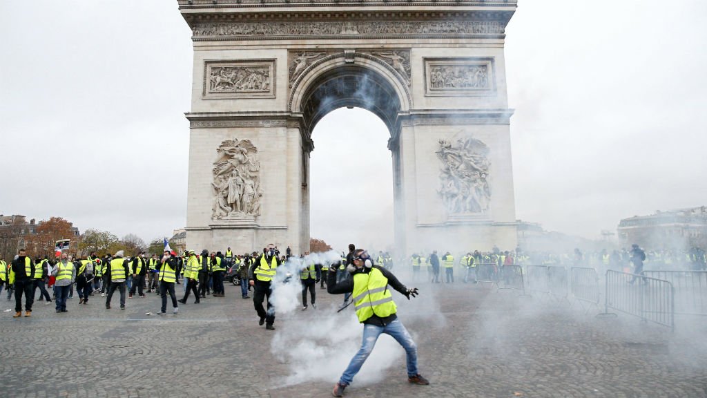VIDEO: On a third day of unrest, clashes between “yellow vest” protesters and riot police break out on the Champs-Élysées in Paris pic.twitter.com/WJUjgTPrW7