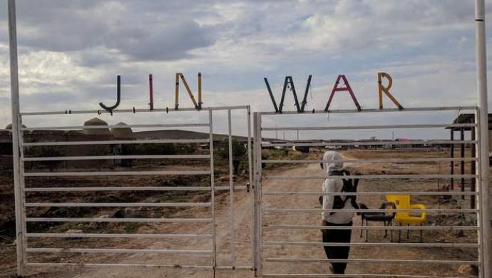 Kuzey Suriye düzlüklerindeki uzun tozlu yolun sonunda, omzundaki tüfeğiyle girişte genç bir kadın Jinwar’ı koruyor.
