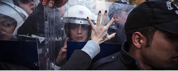 Sıcak ve güçlü bir kadın eli, üstü karga dövmeli, gidip plastik kalkana dayandı ve 25 Kasım’da Taksim Tünel’de yolu etten, çelikten, plastikten ve biber gazından mamul bir şiddet barikatıyla kesilirken yerinden bir santim bile kıpırdamayan büyük ve güçlü kadın kitlesinin direnişini görünür kılan bir simge yarattı. Medya yalanını yaydı; sosyal medya direnişin manzarasını topluca göstermekte yetersiz kaldı; ama kadınlar biliyor: