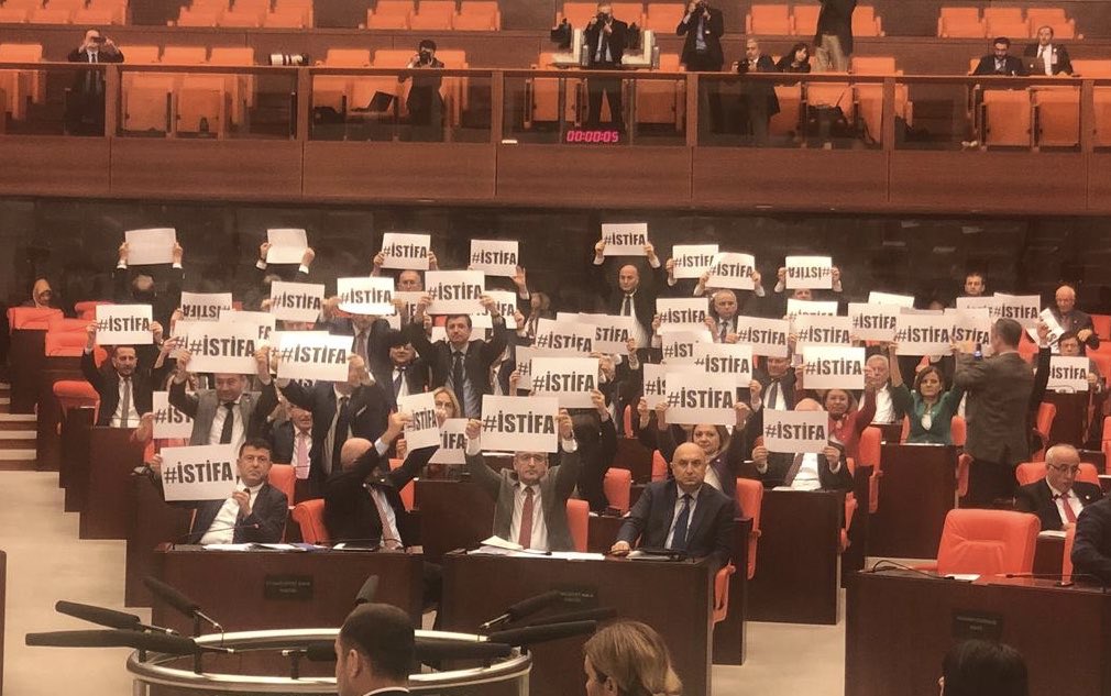 Ulaştırma Bakanlığı’nın bütçe görüşmeleri sırasında kürsüye çıkan Ulaştırma Bakanı Cahit Turhan vekiller tarafından protesto edildi. CHP’li vekiller konuşma sırasında “istifa” yazılı dövizleri havaya kaldırıldı