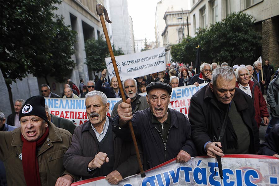 Yunanistan’da mali kriz nedeniyle uygulanan “kemer sıkma” önlemleri son 8 yılda emekli gelirinin ortalama yüzde 40 azalmasına yol açtı. Kurtarma paketi programlarından çıkan ülkede, emeklilerin yanı sıra memurlar da yapılan kesintilerin geri ödenmesi çağrısında bulunuyor.