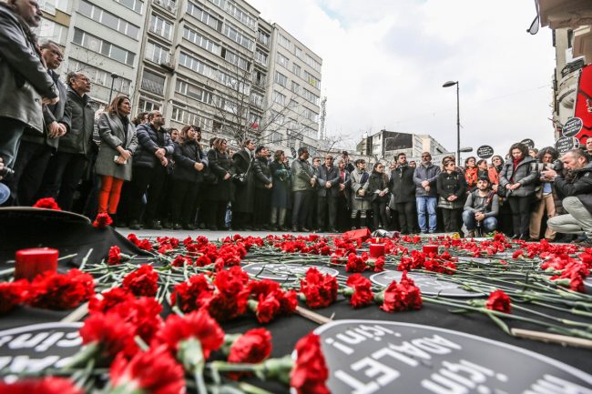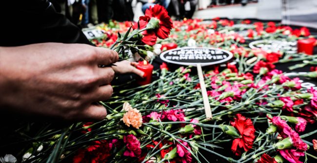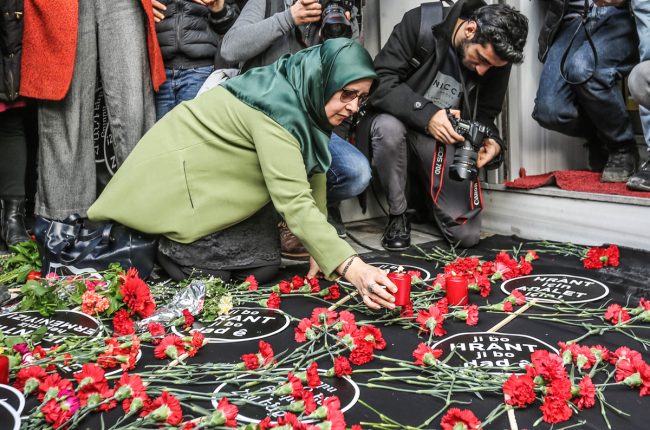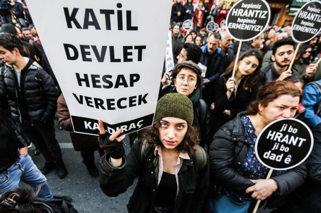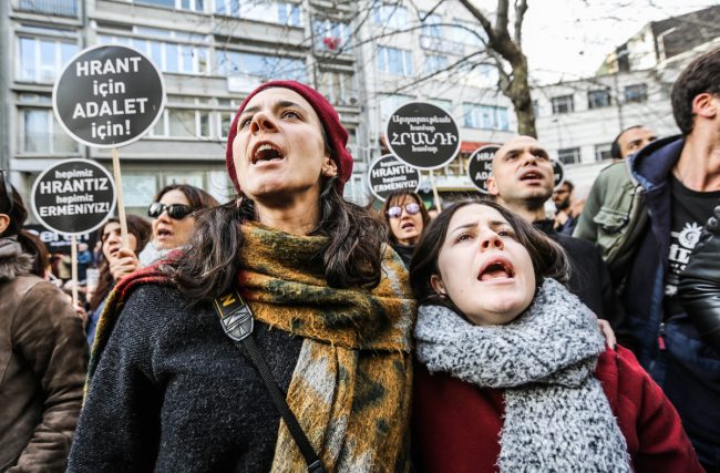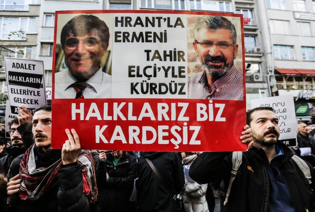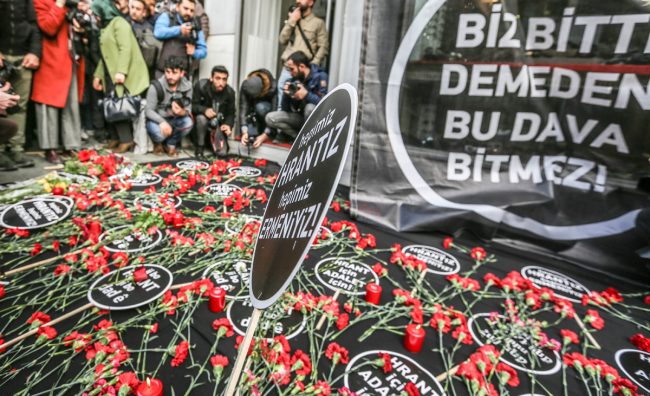 Yakınları, arkadaşları ve yoldaşları, Hrant Dink’in katledilişinin 12. yıldönümünde yine vurulduğu yerde, Agos gazetesinin eski binası önündeydi. Sendika.Org muhabirlerinin objektifinden Hrant Dink anması