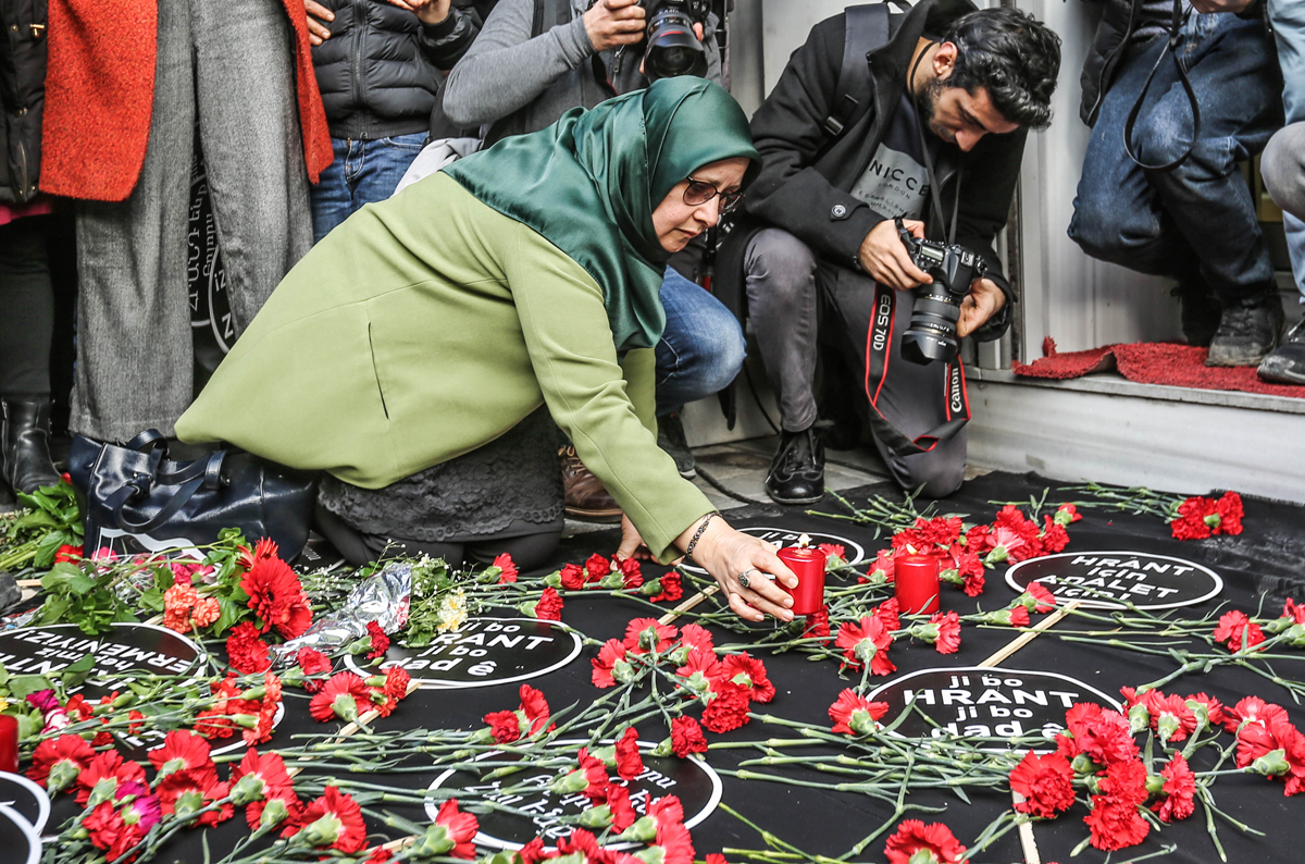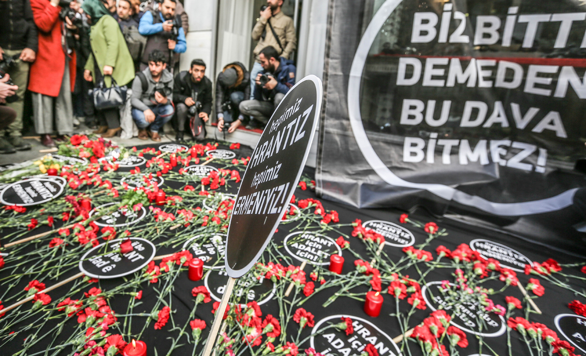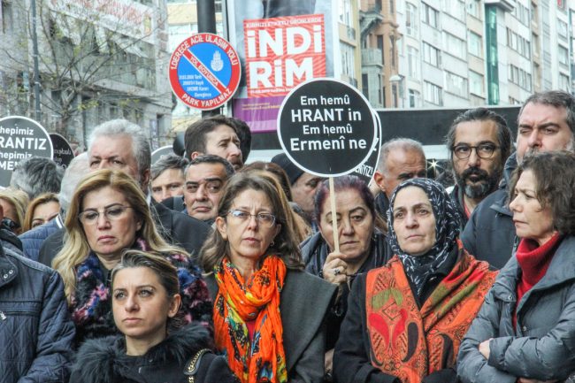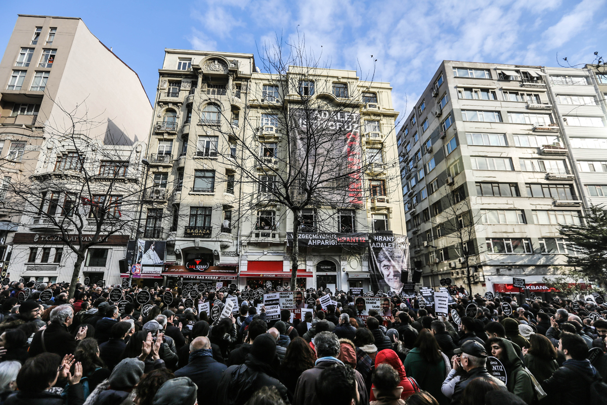 Yakınları, arkadaşları ve yoldaşları, Hrant Dink’in katledilişinin 12. yıldönümünde yine vurulduğu yerde, Agos gazetesinin eski binası önündeydi