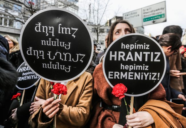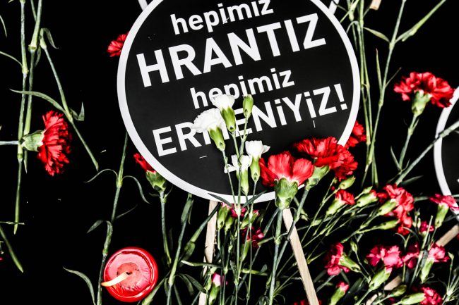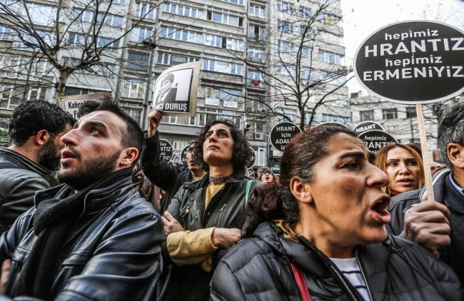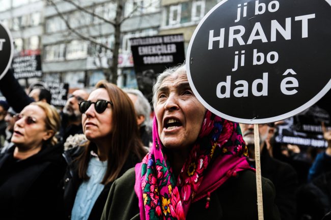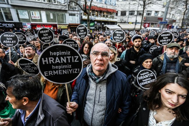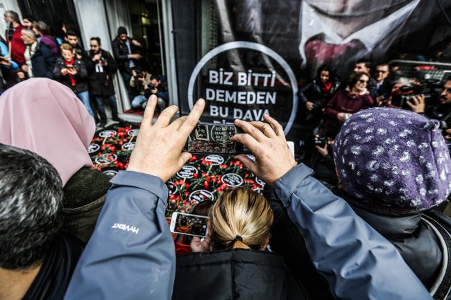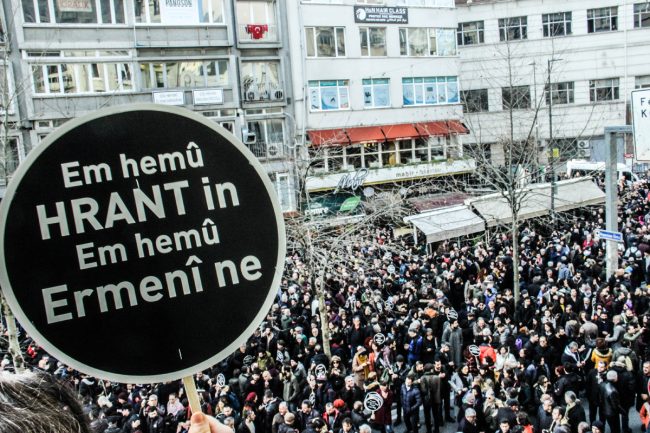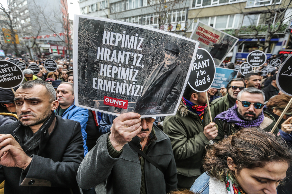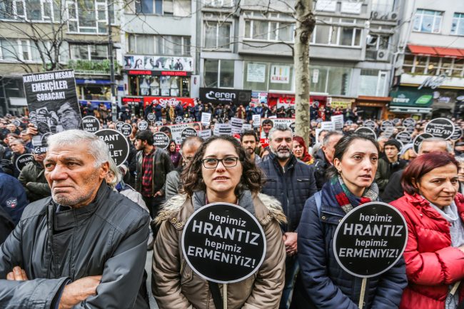 Yakınları, arkadaşları ve yoldaşları, Hrant Dink’in katledilişinin 12. yıldönümünde yine vurulduğu yerde, Agos gazetesinin eski binası önündeydi