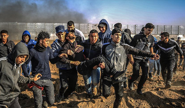 İsrail işgal güçlerinin abluka altındaki Gazze Şeridi sınırında düzenlenen “Büyük Geri Dönüş Yürüyüşü” gösterilerine yönelik saldırılarında iki Filistinli hayatını kaybetti, 61 kişi ise yaralandı