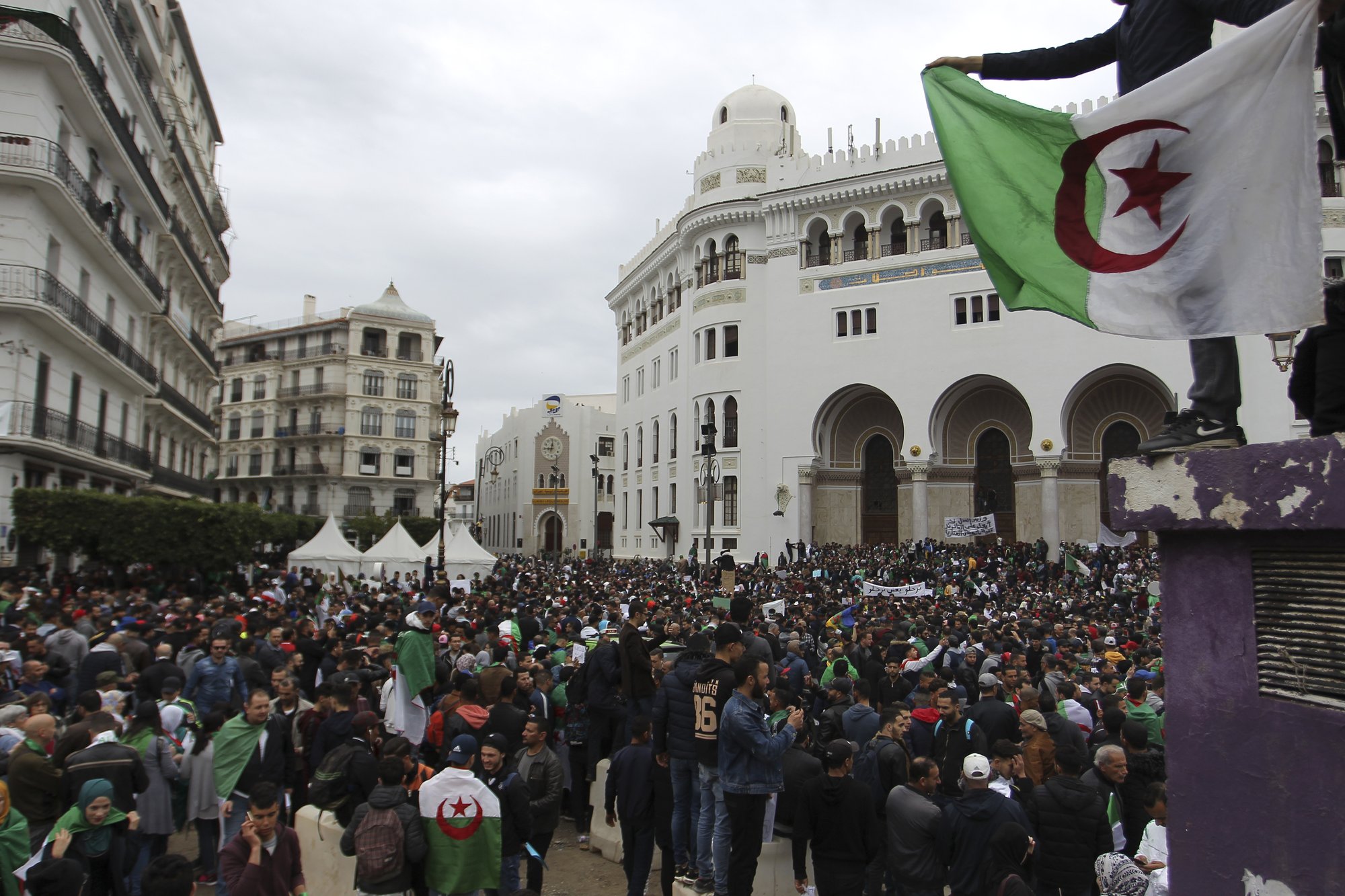 Buteflika’nın 5. dönem adaylığına karşı çıkan on binlerce kişi başkent Cezayir’deki Merkez Postane Meydanı’nda toplandı.