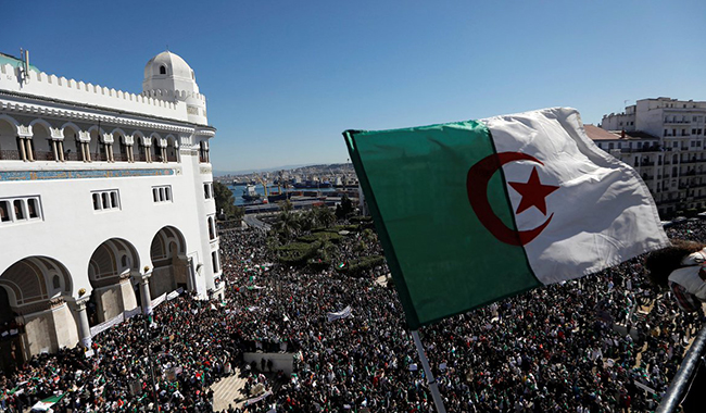 Başkent Cezayir’deki Büyük Postane Meydanı’nda yüzbinlerce kişinin katıldığı eylemde “Eş-şaab yurid iskat el-nizam” (Halk, rejimi devirmek istiyor) sloganları atıldı.