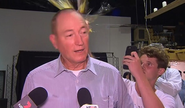 Irkçı senatöre yönelik yumurtalı protesto, dün (15 Mart) Melbourne kentinde gazetecilere açıklama yaptığı sırada gerçekleşti.