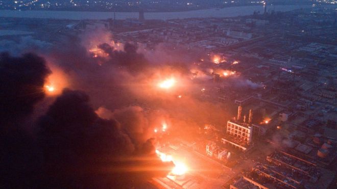 Çin’in Yancheng kentindeki gübre fabrikasında yaşanan patlamada en az 44 kişi yaşamını yitirdi, 640 kişi yaralandı