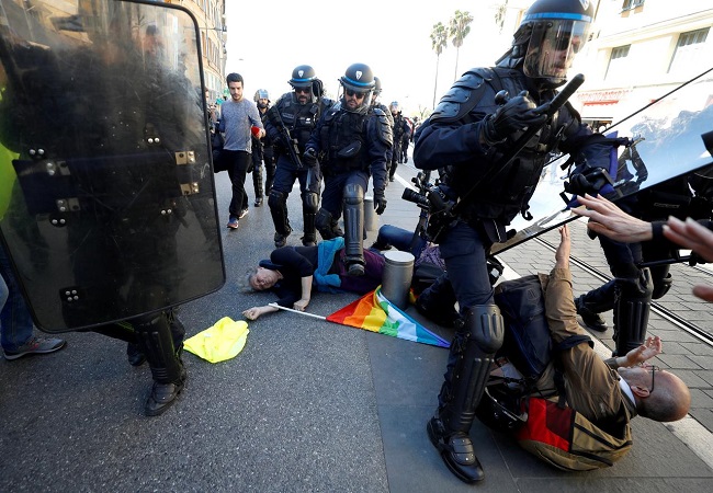 Fransa’da Nice Savcısı Jean-Michel Pretre, Sarı Yelekler’in geçen hafta kentte düzenlediği eylemlerde polisin bir eylemciyi ağır yaraladığını açıkladı. Sputnik Türkiye’nin haberine göre Pretre, düzenlediği basın toplantısında, polisin geçen haftaki eylemde 73 yaşındaki bir eylemciyi yere itmesi sonucu, eylemcinin başından ağır yaralandığını itiraf etti.