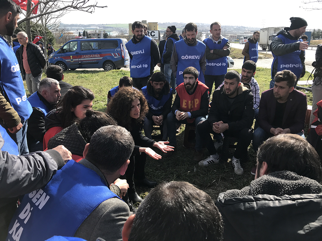 Emekçi Hareket Partisi’nin (EHP) İstanbul Büyükşehir Belediyesi bağımsız sosyalist adayı Özge Akman, Türk-İş/Petrol-İş Sendikası’nda örgütlendikleri için patron baskısı gören ve 6 Mart’tan bu yana direnişte olan Kale Kayış işçilerini ziyaret etti.