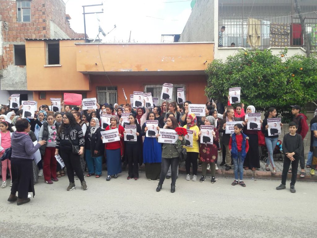 Mersin Kadın Meclisi, ayrı yaşadığı eşi Süleyman Etiz tarafından defalarca tahra ile vurularak öldürülen Leyla Etiz için komşuları, arkadaşları ve ailesi ile birlikte eylem düzenledi