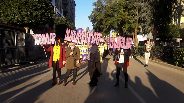 Bursa Kadın Platformu’nun çağrısıyla Setbaşı’nda buluşan yüzlerce kadın Orhangazi Parkı’na yürüdü. Platform adına basın açıklamasını okuyan Funda Eylem Sancarbarlaz, “Bugün krize, şiddete, eşitsizliğe karşı alanlardayız. Esnek kuralsız güvencesiz kayıt dışı ve düşük ücretlerle sömürülmeye, ekonomik krizle birlikte daha fazla yoksullaşmaya karşı mücadelemizi büyütüyoruz” dedi.