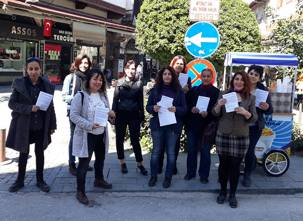 Muğla Kadın Platformu TüvTürk’te direnen kadın işçilere ziyarette bulundu, ardından saat 18.00’de Muğla Sınırsızlık Meydanı’nda basın açıklaması gerçekleştirdi.