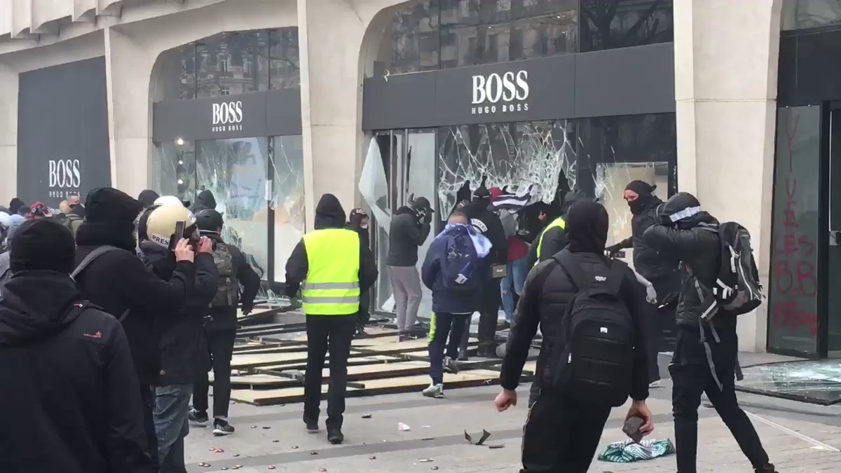 Champs Elysée bulvarındaki belirli lüks mağazalar protestocular tarafından yağmalandı.