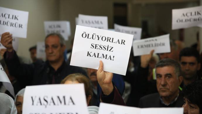 Açlık grevlerini yazmak için oturdum. Bir parlamenter, binlerce tutuklu/hükümlü yani sözde yurttaş ölüme doğru gidiyor. 12 Eylül sonrasındaki gibi. 1990’lardaki gibi. 2012’deki gibi. Eylemcilerin talebiyle sekiz kişi canına kaydı. Diyecektim ki nerede siyaset sıkışmışsa orada açlık grevleri görülmüştür. İki çare vardır: Devlet talepleri karşılar veya kamuoyu ve kamuoyuna seslenme imkanı, gücü olan kurumlar, kuruluşlar, kişiler devletin bugün değilse bile yarın karşılayacağı şekilde meseleyi sahiplenir. Vaka bilgimiz, tarih böyle.
