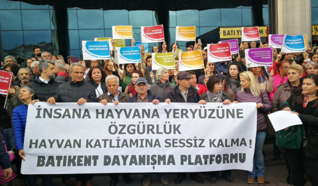 Batıkent Dayanışma Platformu, Turgut Özal Mahallesi’nde araçtan bırakılan zehirli tavuklarla 18 köpeğin katledilmesini protesto etmek için Batıkent Meydan’da bulunan GİMSA önünde eylem yaptı. Eyleme HDP İstanbul Milletvekili Garo Paylan da katıldı. Eylemde sık sık “Katiller bulunsun, cezaları verilsin”, “Hayvanlar susar, sen susma”, “Kanunlar değişsin, hayvanlar sevilsin” ve “İnsana hayvana, yeryüzüne özgürlük” sloganları atıldı. Eylemde basın açıklamasını platform adına Sıla Soyaslan okudu.