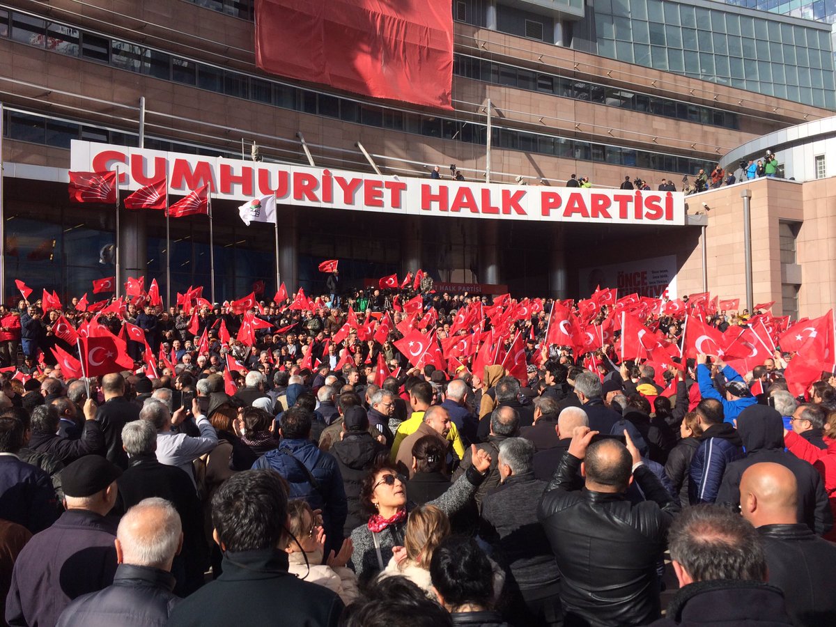CHP teşkilatının çağrısıyla binlerce kişi de genel merkez binasının önünde buluştu. Kitle, “Faşizme karşı omuz omuza”, “Soysuz istifa”, “Kılıçdaroğlu yalnız değildir” sloganları attı.
