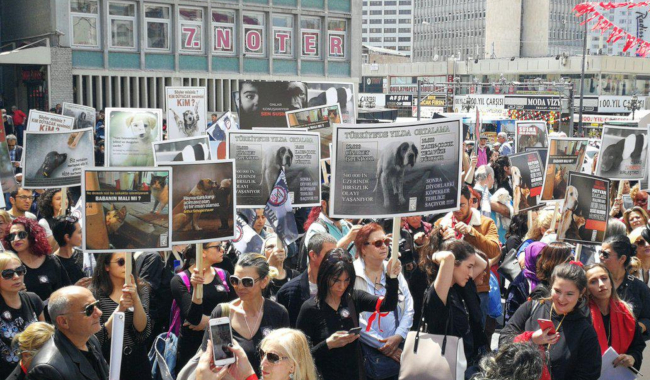 Geçtiğimiz haftalarda Ankara’da Batıkent bölgesinde onlarca köpek zehirli etle zehirlenerek hayatını kaybetmiş, Çubuk’ta boş bir arsada ise benzer şekilde zehirlenmiş sokak köpeklerinin cansız bedenlerine ulaşılmıştı. Yaşanan hayvan katliamlarının ardından Hayvanların Yaşam Hakları Konfederasyonu’nun (HAYKONFED) çağrısıyla Ulus Meydanı’nda “Büyük Ankara Mitingi” yapıldı. Mitinge İstanbul Barosu Hayvan Hakları Merkezi de katıldı.