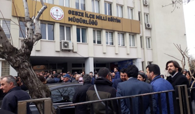 AA’nın aktardığına göre, olayı duyan öğretmen ve öğrenciler Gebze İlçe Milli Eğitim Müdürlüğü önünde toplandı.