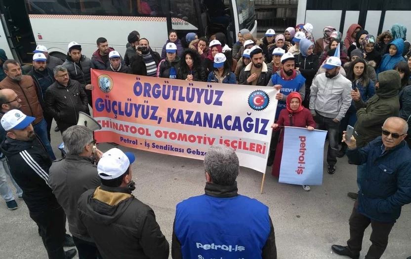 Gebze’deki Chinatool Automotive fabrikasında Petrol-İş’te örgütlenen 5 işçi işten atıldı. Fabrika önünde yapılan eylemde işçiler örgütlenme haklarına sahip çıkacaklarını söyledi