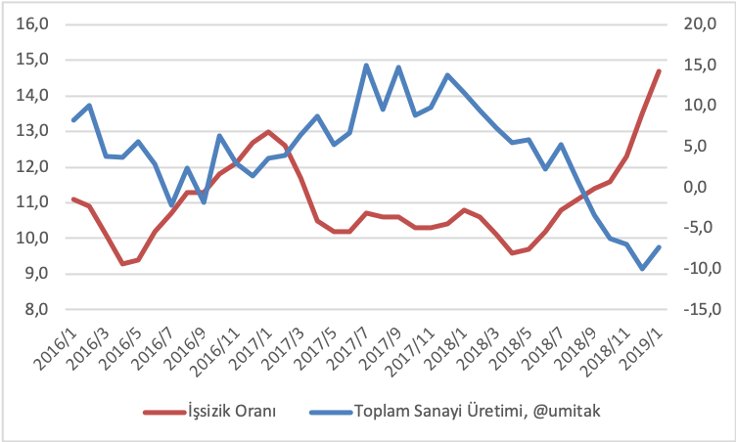 İşsizlik, genç işsizlik, tarım dışı işsizlik ve sanayi üretimi-işsizlik verilerini sunan Akçay, 2009 krizindeki eşiklerin aşılmaya başladığına dikkat çekti.