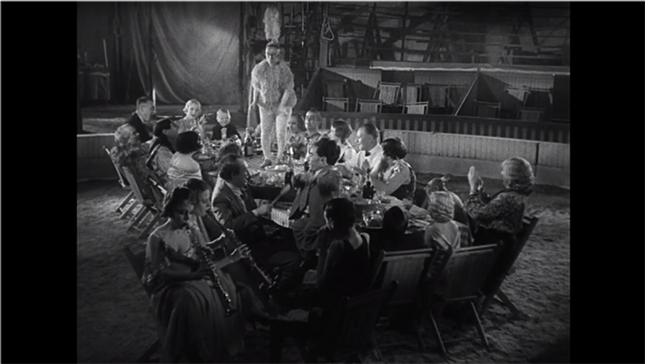 Düğün yemeğine, uzun dikdörtgen bir ziyafet masası etrafına oturmuş sirk çalışanı ucubelerle aralarında Cleopatra ve Herkül’ün de dahil olduğu az sayıda ‘büyük insan’ katılır, yer, içer, dans eder, şarkı söyler ve gülerler. Başlangıçta, Bakhtinci anlamda karnavalesk denebilecek bu seremoni, Cleopatra’nın aniden iğrenmesiyle beraber dağılacaktır.