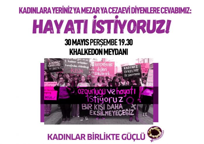 “Erkek adalet değil, gerçek adalet!” için 30 Mayıs Perşembe günü Kadıköy Khalkedon’da saat 19.30’da birlikte sesimizi yükseltelim.
