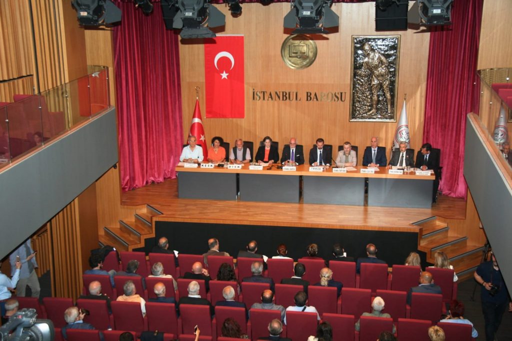 İstanbul Barosu Konferans Salonu’nda düzenlenen basın toplantısında “Herkes için adalet, herkes için vicdan, herkes için demokrasi talep ediyoruz” denildi. “Seçimin değil YSK kararın şaibeli” olduğu ifade edilen açıklamada, demokrasimizin tarihin hiçbir evresinde olmadığı kadar ciddi bir tehdit altında olduğu, 23 Haziran seçimlerinin sadece bir Belediye Başkanı seçimi olmadığı vurgulandı.