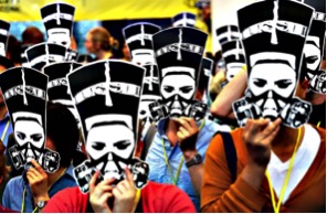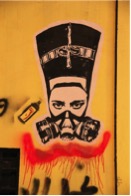 Nefertiti, Mısır tarihindeki en etkili Firavun Kraliçelerinden biridir. Gücü, bilgeliği ve vatanseverliğiyle ünlüdür. 28 Ocak 2011’den itibaren, Mısırlı protestocular polis güçleri tarafından kullanılan göz yaşartıcı gaza karşı kendilerini korumak için gaz maskeleri kullanmaya başlamışlardı. Bu süreçte gaz maskesi kullanan kraliçe Nefertiti’nin çizimleri Mohamed Mahmoud (Muhammed Mahmud) Caddesi’ndeki duvarlarda uygulandı.