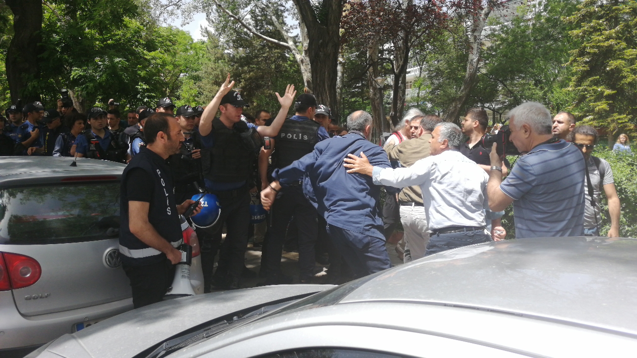 Türkiye’nin dört bir yanından gelen KESK’lilerin Aile, Çalışma ve Sosyal Hizmetler Bakanlığı’na yapmak istediği yürüyüş polis tarafından engellendi. Eser Parkı’nda yapılan basın açıklamasının ardında şubelere doğru yürüyüşe geçen KESK’lilerle polis arasında tartışma yaşandı. Polis bir KESK’liyi darp etti