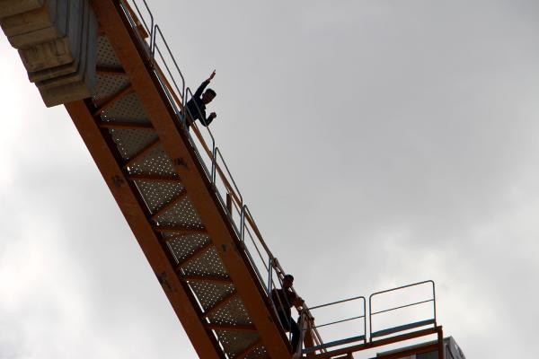 DHA’nın aktardığına göre demir ve kalıp işi yapan, 3 aydır paralarını alamayan İsmail Dil, İsmail Arslan, Muhammed Oralı ve Radi Çolak isimli işçiler öğle saatlerinde iş bırakarak vince çıktı. İşçileri görenlerin haber vermesi üzerine olay yerine polis ekipleri sevk edildi.