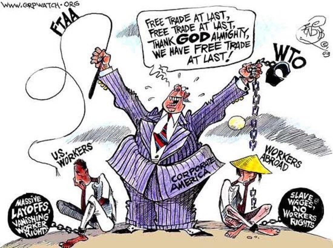 İngiliz savaş gemilerinin, 1842 yılında, Çin tarafından uygulanan gümrük tarifelerini ortadan kaldırmak için Çin’i işgal ettikleri tarihten bu yana serbest ticaret asla serbest ticaret olmadı. Gerçekte “serbest ticaret” ulusal bağımsızlıkları ve demokrasiyi zayıflatan ve giderek ortadan kaldıran bir mekanizmaya dönüştü (10).